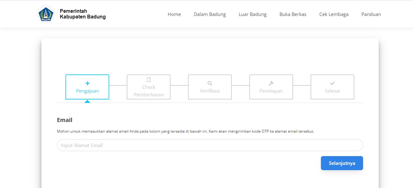 Setelah menekan tombol simpan, sistem akan mengirim kode OTP ke alamat email / no nomor telpon tersebut. Pastikan alamat yang digunakan aktif