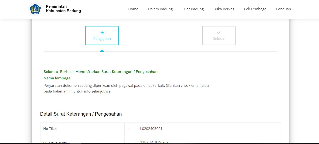 Pengajuan Berhasil Dibuat